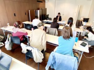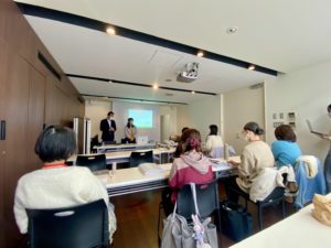 創業ワークでは赤枝医院でも20年産後ママのアロマケアをされている、アロマのエキスパート小山まりこ先生の講義でした。